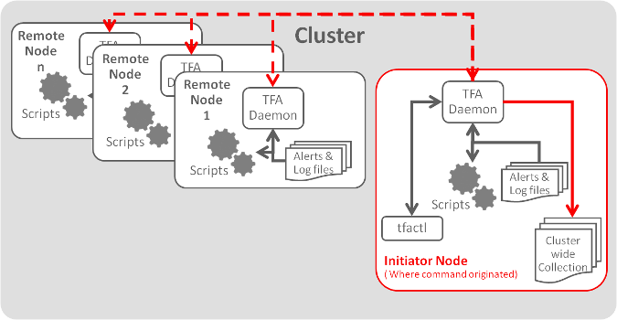 Cuando TFA se encuentra corriendo como un deamon, este monitorea archivos de log en busca de problemas importantes. Si se produce un error interno o si se detecta una evicción de nodo, TFA es capaz de: